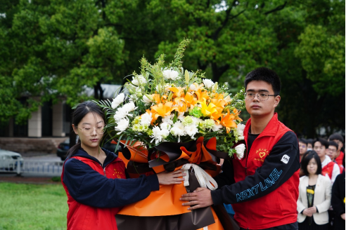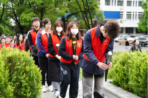 ,机电工程学院,土木工程学院,环境生态与生物工程学院,兴发矿业学院、资源与安全工程学院师生代表依次向英雄献花致敬。
