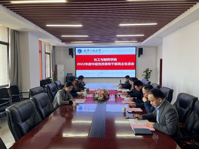 在化工大楼605会议室召开2022年度中层党员领导干部民主生活会。学校第一督导组:校党委书记程幼金、党政办公室主任但继恩、组织部党校办公室主任陈恩雨出席,会议由院党委书记汪铁林主持,领导班子全体成员参加会议。