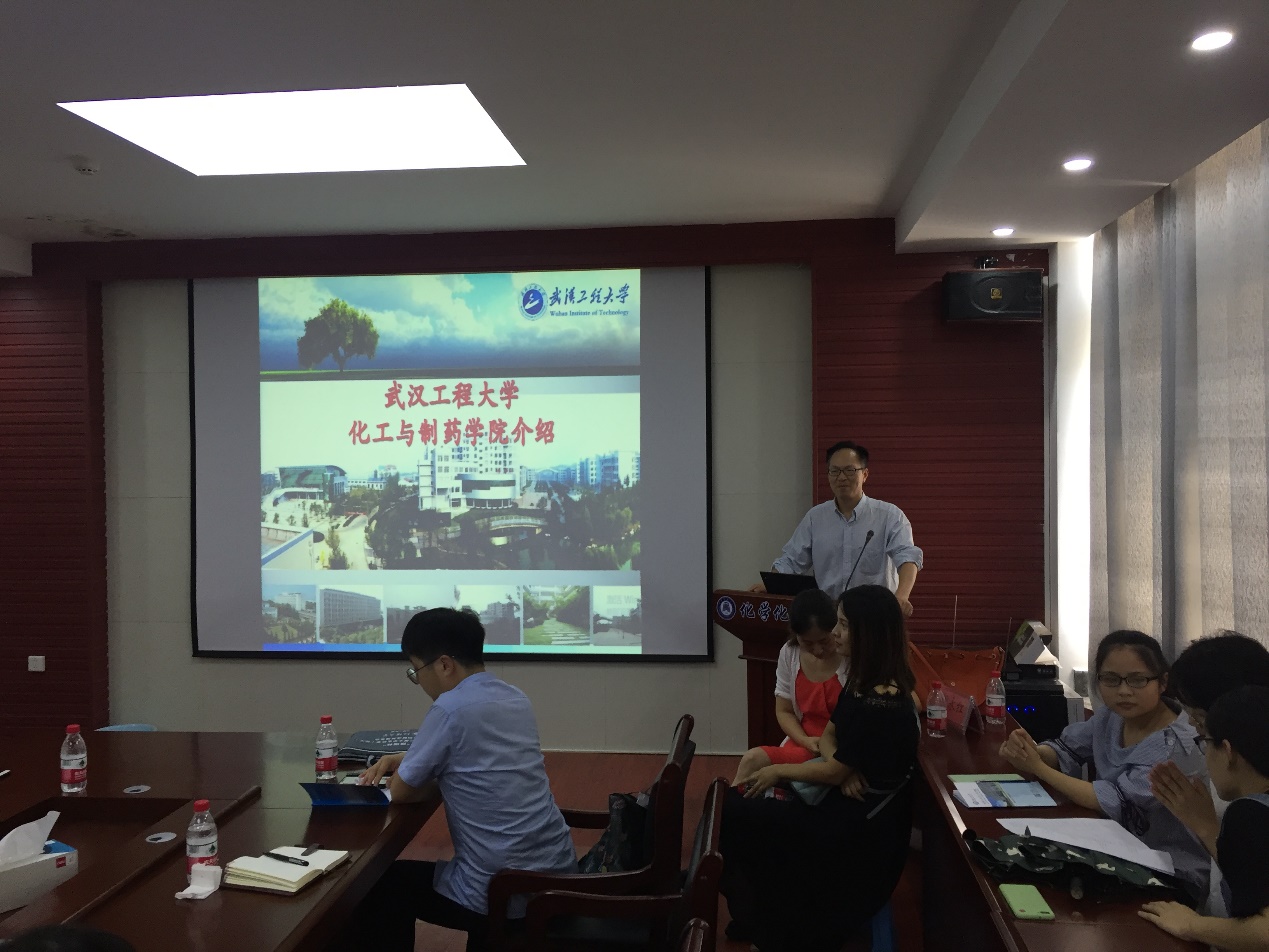 招生宣传组一行与化学化工学院2016级应用化学、环境工程、化工专业及相关专业的学生举行了一场见面会。龙院长介绍了学院的发展历程、专业分类、培养层次、学科平台、师资队伍、学科方向、研究成果、知名导师代表、奖助政策、招生计划和毕业研究生就业情况,解读了武汉工程大学研究生招生政策,欢迎优秀学子第一志愿报考武汉工程大学,来我校继续学习深造。招生宣传组与同学们进行了亲切交谈,取得良好效果。