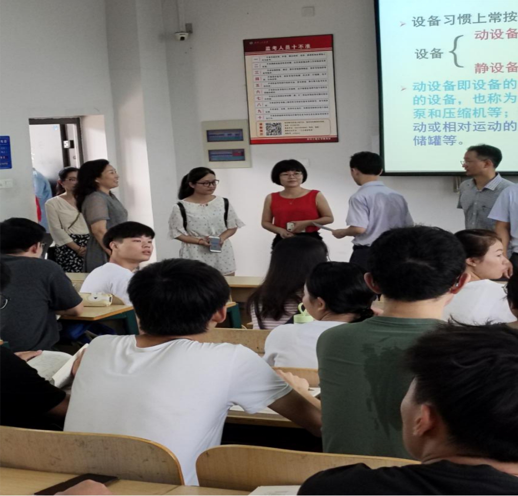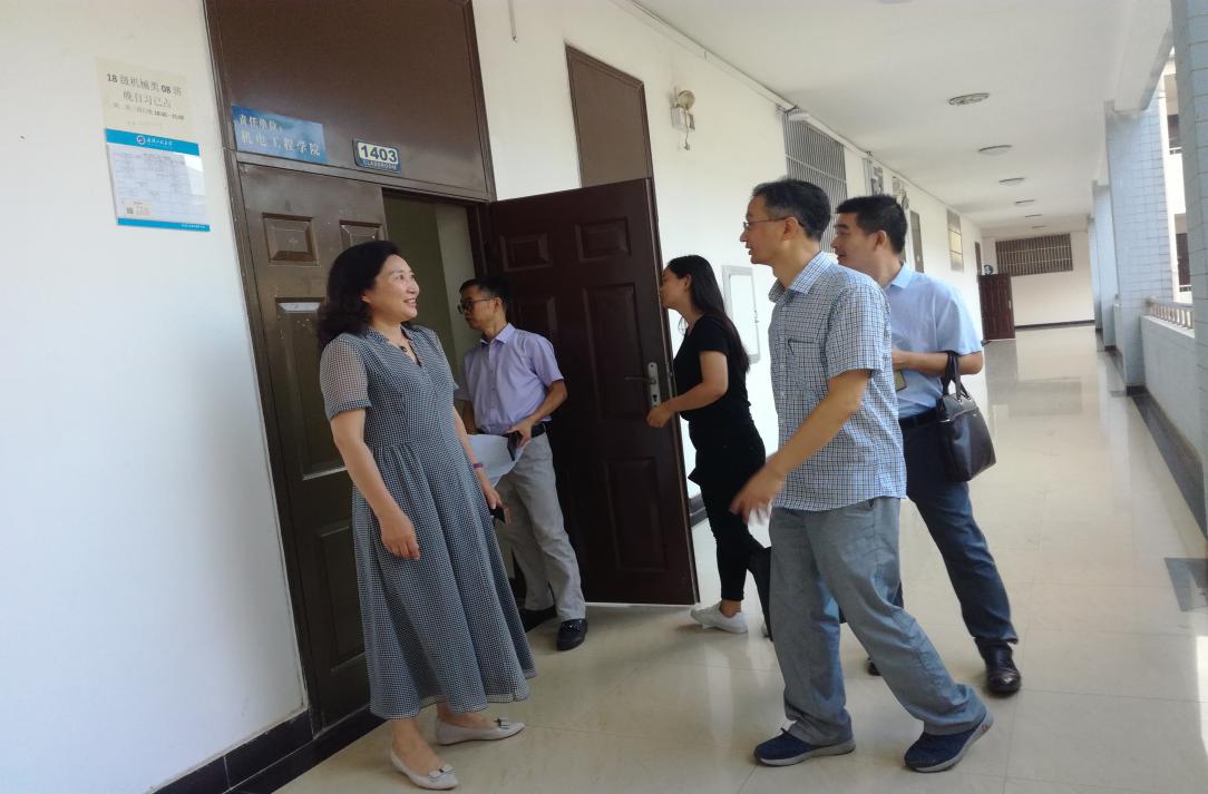 党委书记王雪梅、党委副书记田勇和教学副院长刘生鹏带领学院教学管理办公室高友智老师、学生辅导员李茜、沈霁月、汪喆伦、胡舒乐等老师深入到各教学楼教室检查上课情况,了解教师课前准备工作,掌握学生到课情况和学习状态,与师生们同上“开学第一课”。