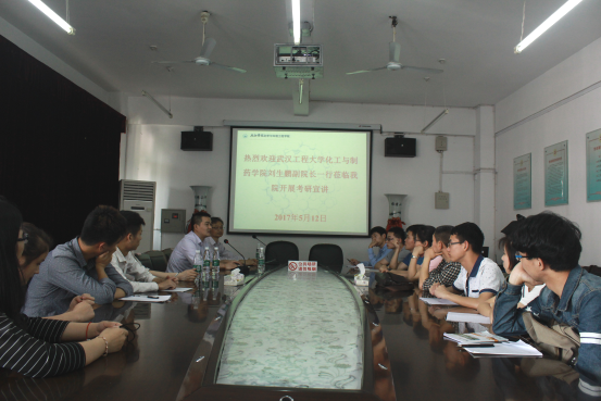 刘生鹏介绍了学院的发展历程、专业分类、培养层次、学科平台、师资队伍、学科方向、研究成果、交流平台、知名导师代表、奖助政策和招生计划,解读了武汉工程大学研究生招生政策,并邀请优秀学生参加学院举办的夏令营活动,欢迎优秀学子到武汉工程大学继续学习深造。制药工程学科中心主任龙思会向在场师生重点介绍了制药工程专业的师资力量,科研成果以及制药专业的前沿研究领域。田勇就近几年学院研究生奖助和就业情况作了重点介绍。会后,宣传组与学生代表进行了现场交流,一一回答学生提出的问题。