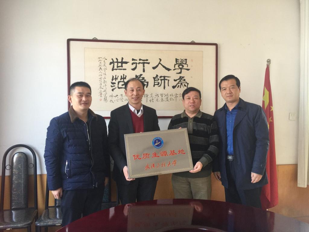 会后,喻发全教授向新乡一中李校长授予武汉工程大学“优质生源基地”标牌,并发放招生宣传简章。