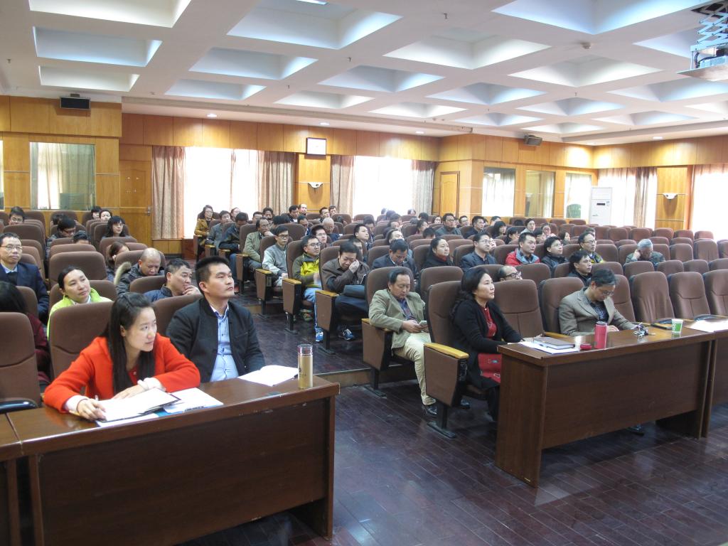 在武昌校区多功能报告厅召开了全体教职工大会,主要议题是宣传、讲解学院“十三五”事业发展规划。会议由学院党委副书记田勇主持。