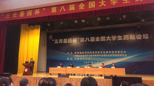 为贯彻落实教育部“本科教学工程”文件精神,大力培养本科生实践创新能力,展示大学生创新创业成果,由教育部高等学校药学教学指导委员会、中国高等教学学会医学教育专业委员会药学教育研究会主办,中国药科大学承办的“三元基因杯”第八届全国大学生药苑论坛于2015年11月20-22日在江苏南京召开。
