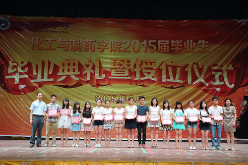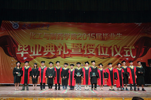 最后,在熟悉而雄壮的武汉工程大学校歌声中,举行了最隆重和神圣的学位授予仪式,学院领导和教授代表向2015届毕业生授予学位、合影留念。