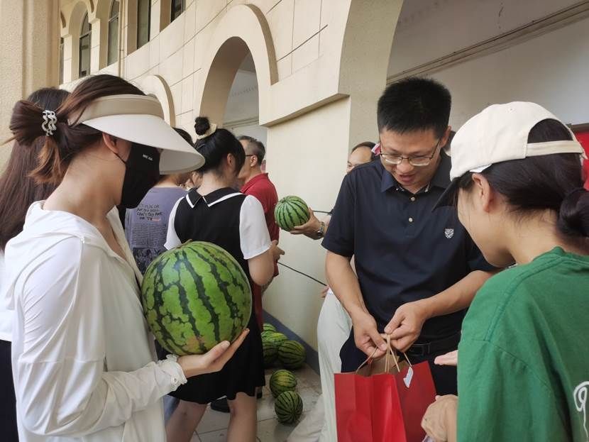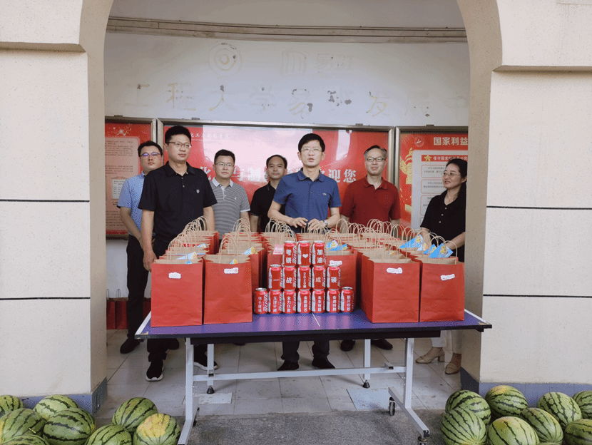 党委书记汪铁林,院长易群,党委副书记周丹,副院长龙思会、金放、古双喜,院长助理刘根炎、吴华东,院工会主席谌伟民,辅导员梅军、冯婧、蓝传祺开展暑期“盛夏送清凉”活动,慰问暑期坚守岗位、开展科研、备赛、考研的师生。