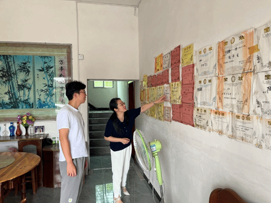 炎炎夏日,骄阳似火,家访一行人驱车两个小时来到2022级本科生小万家中。一进门,老师们就被屋内张贴满墙的奖状所吸引,众人仔细看完了张贴的各项荣誉,也对眼前腼腆、上进的小万有了进一步的了解。随后,老师们与小万父亲就学生在校学习情况和表现、思想动态、学业发展以及家庭情况等方面进行了深入交流,就小万及家人所关注的就业考研等问题进行了详细的解答,帮助小万进一步明晰生涯规划。周丹鼓励小万保持良好的学习状态,勇于克服困难,自强不息、刻苦学习,用知识改变自己的命运,成为全面发展的国家栋梁。“感谢学院老师们大热天来看望我们一家,孩子在学校我们放心!”家访结束后小万的父亲紧握住周丹的手不住的表示感谢,并表示后续会及时和学院老师交流,共同助力学生的成长和进步。