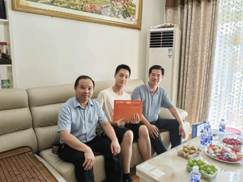王存文为张典及家长介绍了学校和专业有关情况,勉励张典在进入武汉工程大学后,继续保持追求向上的精神状态,做好大学学涯规划,不断增长学识、开阔眼界、勤勉自律、锤炼本领,努力做有理想、有追求、有担当、有作为、有品质、有修养的新时代大学生。王存文十分赞扬张典的志向,他指出,化工行业是支柱产业和基础产业,是国民经济中不可或缺的重要组成部分,当前新能源等产业如日方升,传统应用领域变革日新月异,在碳达峰碳中和的进程中,化工行业大有可为。要站在更高的角度看世界,努力成长为能担重任的时代新人,学成后为祖国的化工事业以及社会发展做出自己的贡献。
