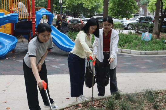 本科制药工程党支部与武汉工程大学听涛志愿服务队走进武汉市洪山区梨园街道华腾园社区,开展“践行新时代大学生劳动教育”主题党日活动,活动中党员同志们携带垃圾袋、垃圾夹清理散落在草丛及路边的垃圾,不放过任何一处死角,通过一下午的劳动,居民社区面貌焕然一新,社区环境更加干净整洁。