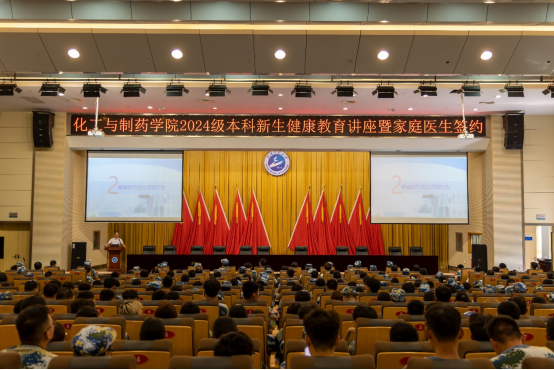 联合校医院在四教多功能报告厅举行2024级本科新生健康教育讲座暨家庭医生签约活动。校医院公共卫生科熊玉莲主任、第三家庭医生团队成员,学院新生辅导员张锦、翟森稳以及2024级全体本科新生参加了本次活动。