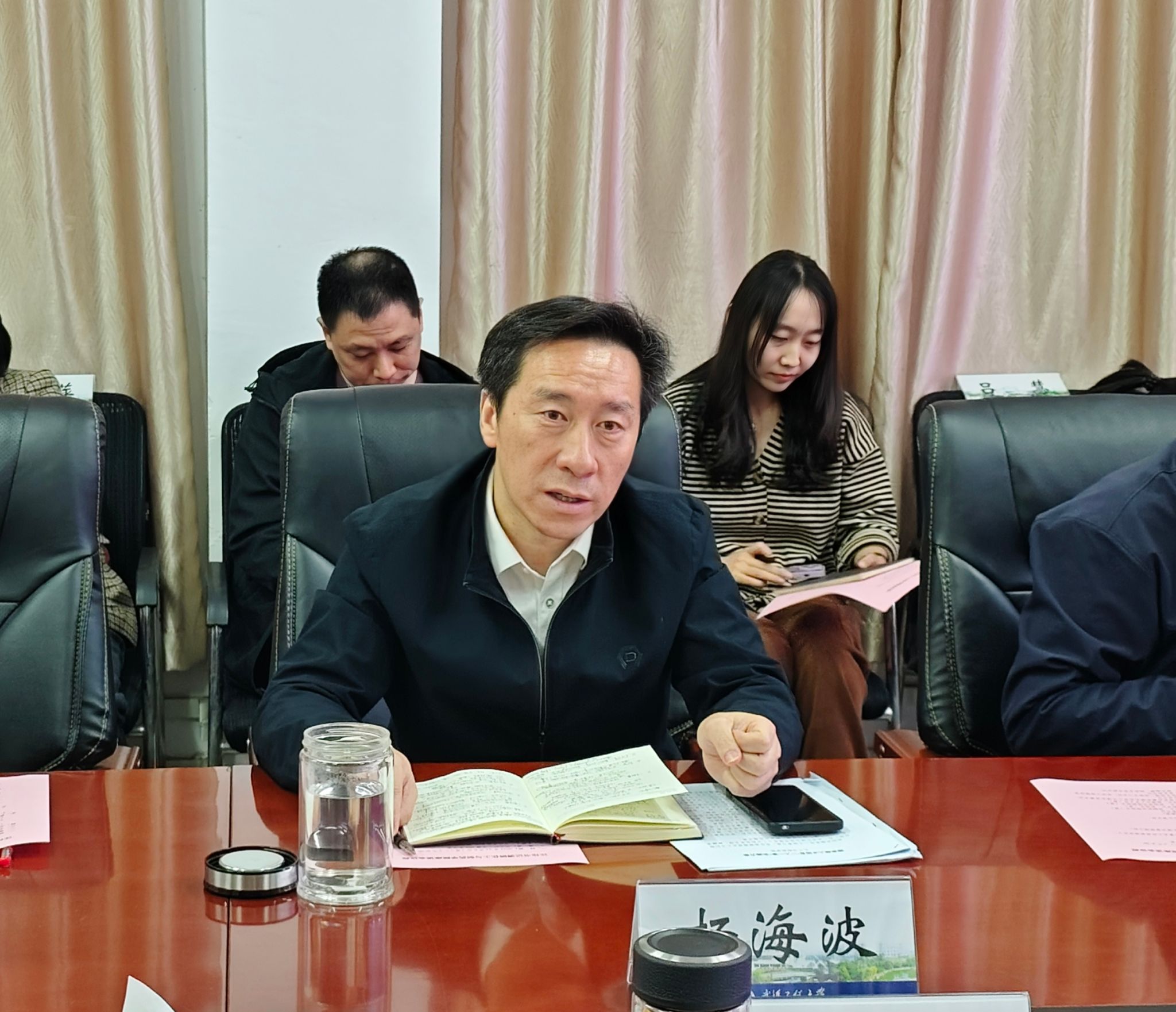 杨海波从党建思政、人才引育、人才培养、教学科研、治理体系、安全稳定等方面进行简要汇报,总结了阶段性成绩,提出了下一步工作思路和创新举措。
