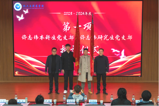 党委书记杨海波为许志伟研究生党支部、许志伟本科生党支部授旗。