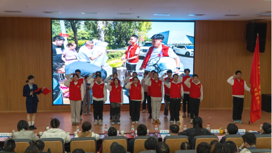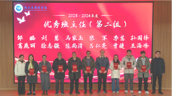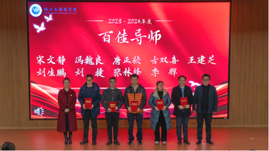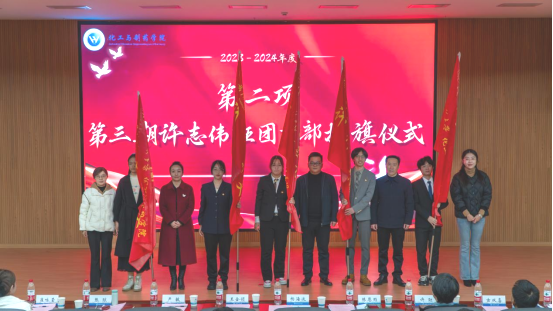 党委书记杨海波为第三期许志伟班团支部授旗,并为获评“百佳导师”“优秀班主任”“优秀辅导员”的老师们颁奖。