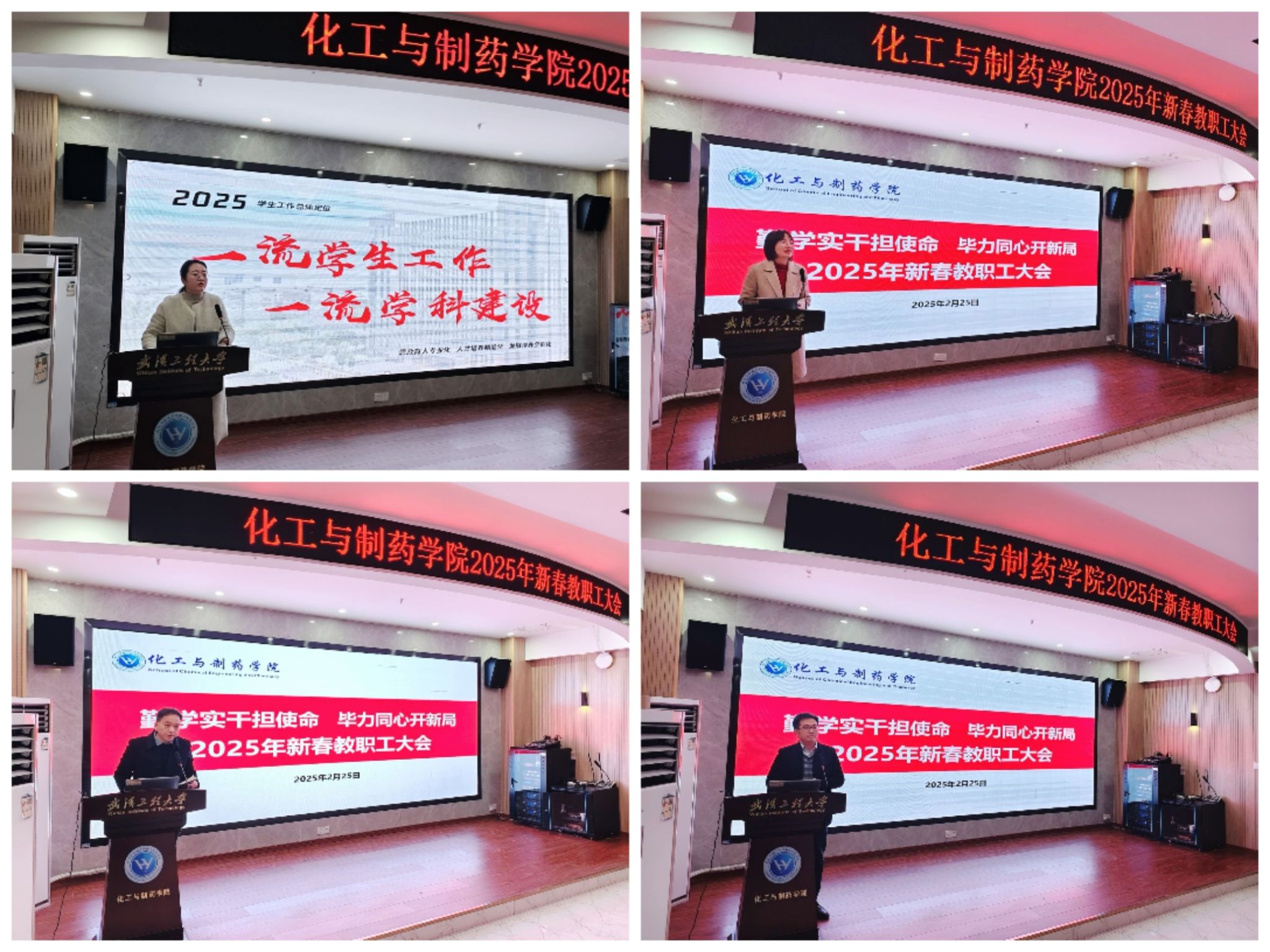 本网讯(通讯员 吕慧 高慧 蓝传祺)春潮涌动催人进 砺砺前行正当时。2月25日下午,学院在大化工楼610多功能报告厅召开2025年新春教职工大会。学院领导班子成员和全体教职工参加会议,会议由学院党委书记杨海波主持。