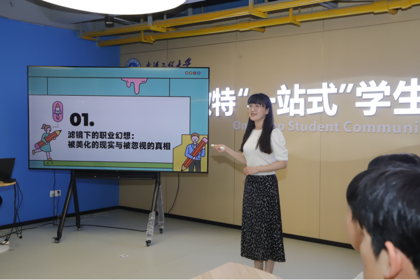 思政班导师王乃婧为大家讲授主题班团课——《“体面”的N种写法一一当职业滤镜遇到劳动真相》,她以“什么是大家心目中的‘体面’工作”为引,帮助同学们去掉职业滤镜,矫正认知偏差,引导同学们树立只要“创造价值 服务社会 成就自我”的劳动便是真正“体面”工作的观念,帮助同学们进一步树立正确的劳动观和职业观。