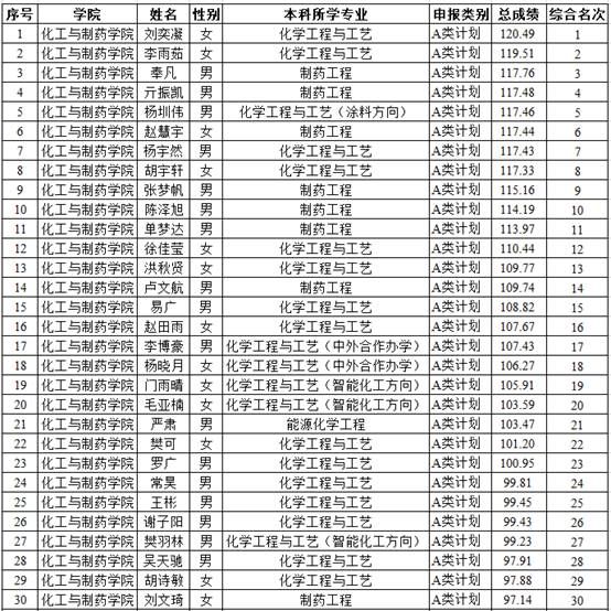 2024年推荐优秀应届本科毕业生免试攻读硕士学位研究生工作方案》的文件精神,经学生本人申请,学院推免生遴选工作小组资格审查、专家综合考核和评议,按照学校下达名额的1:1.2提出候选人的原则,确定获得2024年推荐免试攻读硕士学位研究生资格初选名单,按总成绩(总成绩=所修课学分加权平均成绩+奖励得分+学院综合考核得分)进行排序公示如下: