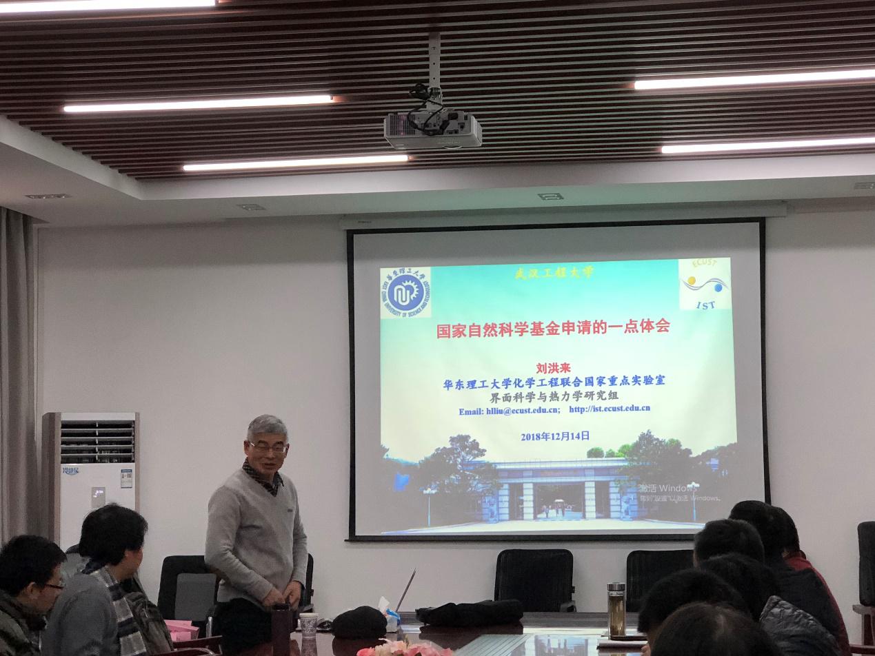 本网讯(通讯员杨犁12月14日下午,应足彩比分 ,绿色化工过程教育部重点实验室湖北省新型反应器与绿色化学工艺重点实验室邀请,华东理工大学化工学院和化学与分子工程学院刘洪来教授应邀莅临我校,作了题为国家自然科学基金申请的一点体会”的学术报告。报告会由足彩比分 副院长田琦峰教授主持,足彩比分 相关教师参加了本次学术交流活动。
