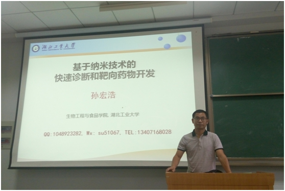 5月18日下午,湖北工业大学孙宏浩教授应邀在流芳校区四教学楼L4104教室为我校学生做了主题为“基于纳米技术的快速诊断和靶向药物开发”的学术报告。报告会由刘生鹏院长主持,足彩比分