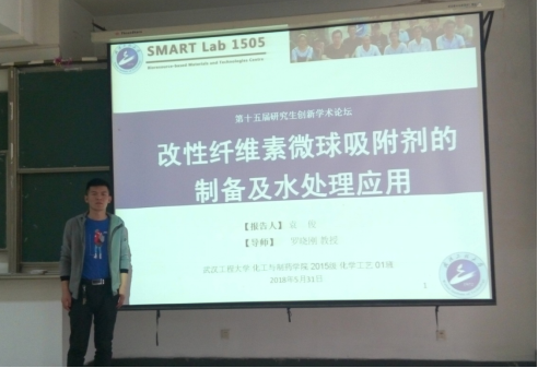 5月31日下午,武汉工程大学研究生袁俊、刘超在流芳校区一教学楼L1119教室为我校学生做了学术报告,主题分别为“磷酸化纤维素微球的制备及用于水相中Pb(II)的高效吸附”和“木质素基高效吸附剂的设计及用于水相中磷酸根的脱除”。报告会由严静老师主持,足彩比分