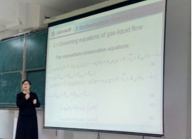 报告会中,卢霞博士为我们介绍了外环流反应器,外环流反应器具有料混合较好,湍动剧烈,气泡分散,传质面积大,反应速率快等优点,广泛应用于磷铵中和、水处理、微生物培养等工业过程中。并着重讲解了如何研究外环流反应器的流动特性和反应器的流动特性研究方法。