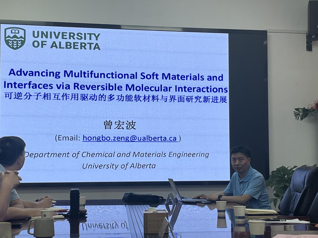 应课题组邀请,加拿大阿尔伯塔大学曾宏波院士于7月3日上午莅临足彩比分 - 精准及时的足球竞彩比分 进行学术讲学----《Advancing Multifunctional Soft Materials and Interface via Reversible Molecular Interactions》(可逆分子相互作用驱动的多功能软材料与界面研究新进展)。